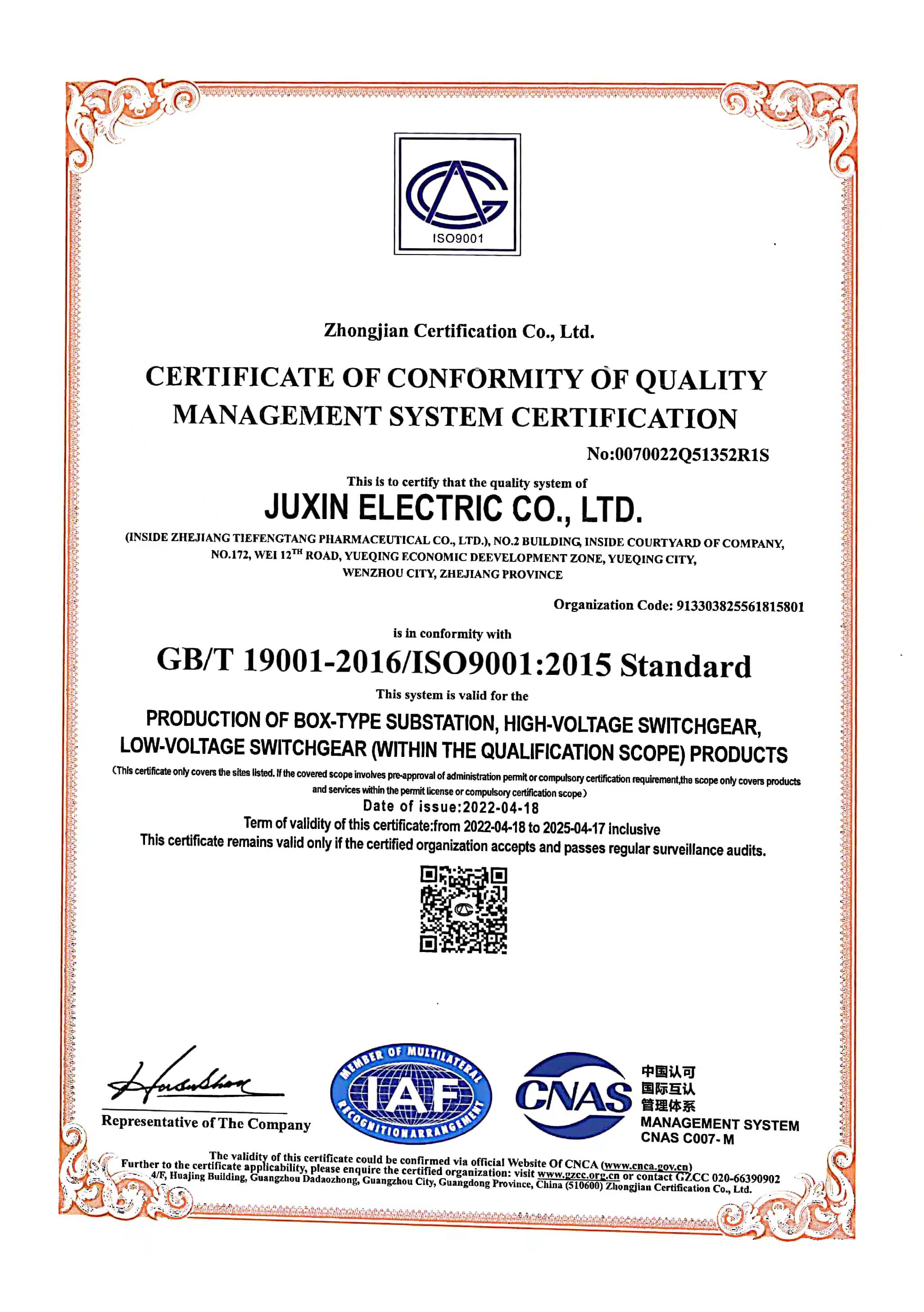 Juxin remains steadfast in its commitment to industrial development and innovation-driven philosophy. The company is dedicated to enhancing its operational capabilities to strengthen,optimize, and expand its industrial sectors. Juxin strictly adheres to standardized management practices and has successfully obtained the ISO 9001:2015 Quality Management System certification, the ISO 14001:2015 Environmental Management System certification, and the GB/T 45001-2020/ISO 45001:2018 Occupational Health and Safety Management System certification.