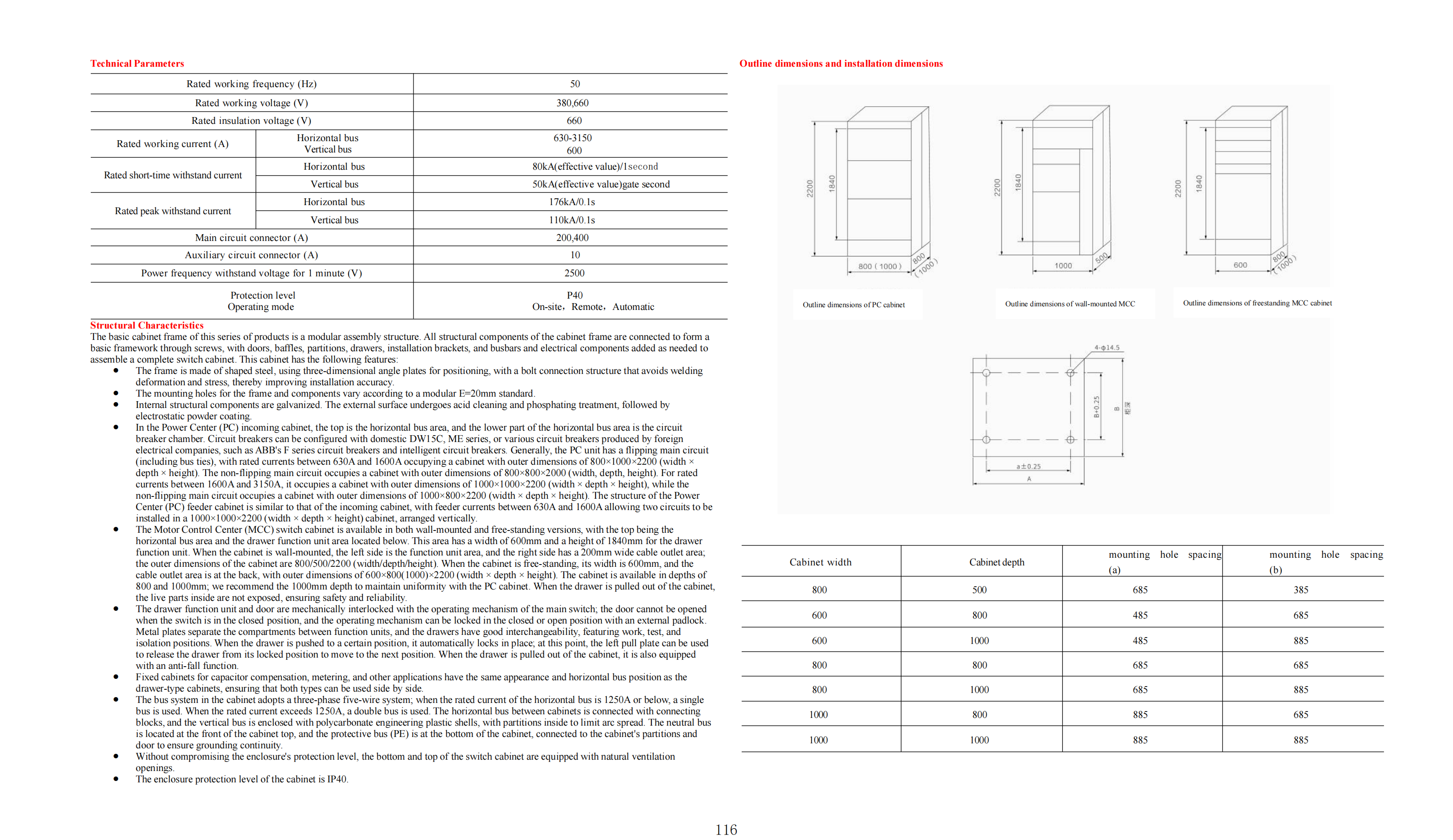 TheGCKlowvoltagewithdrawableswitchgearconsistsoftwoparts:the PowerDistributionCenter(PC)cabinetandtheMotorControlCenter(MCC).Itissuitableforpoweruserssuchaspowerplants,substations,andindustrial andminingenterprisesaspartofadistributionsystemforACpowerat50Hz,withamaximumworkingvoltageofupto660Vandamaximumworking currentof3150A.Itservesasameansforenergyconversion,distribution,and controlforpowerdistribution,motorcontrol,andlightingequipment.